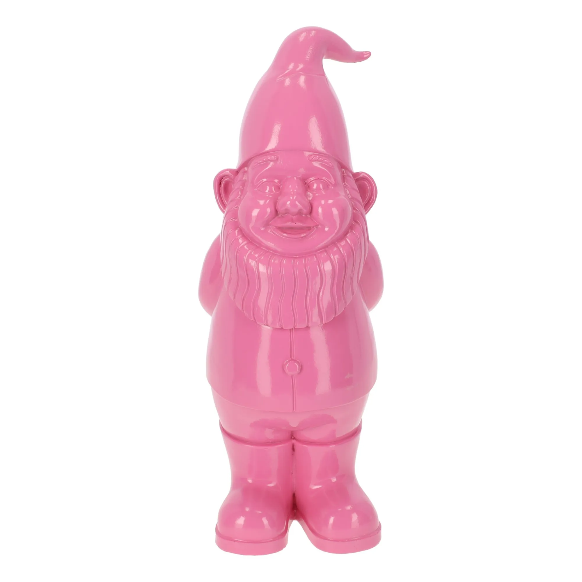 Deze vrolijke kabouter van 40 cm is uitgevoerd in een opvallende fuchsiakleur en vormt een speels accent in huis of tuin. Dankzij het weerbestendige materiaal kan hij zowel binnen als buiten worden neergezet, bijvoorbeeld tussen de planten of als opvallende decoratie in de woonkamer.