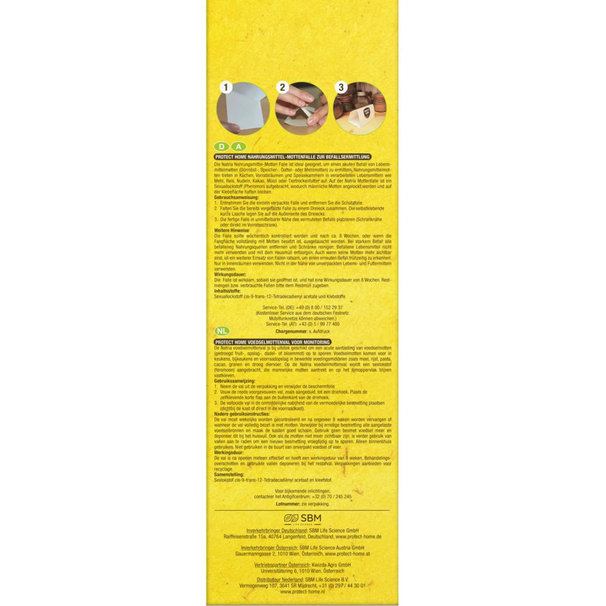 Voedselmottenval voor het monitoren van motten in keukens en voorraadruimtes. Werkt zonder insecticide, is reukloos en blijft tot 8 weken effectief. Bevat 3 kleefvallen.