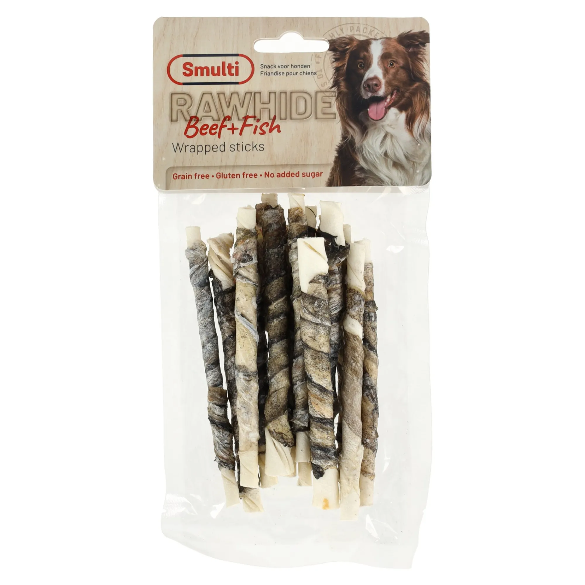 De rawhide snack staaf met vis is een smakelijke en langdurige kauwsnack voor honden, gemaakt van stevige runderhuid (rawhide) omwikkeld met heerlijke vis. Deze combinatie biedt niet alleen kauwplezier, maar draagt ook bij aan het reinigen van het gebit en het verminderen van tandplak en tandsteen. De toevoeging van vis geeft een unieke smaak die honden onweerstaanbaar vinden. Vrij van kunstmatige toevoegingen en geschikt voor honden van alle rassen en leeftijden. Een gezonde en smaakvolle traktatie voor honden die genieten van een stevige kauwsnack met een vleugje vis! Laat de hond niet alleen met kauwmateriaal. Zorg voor vers water.