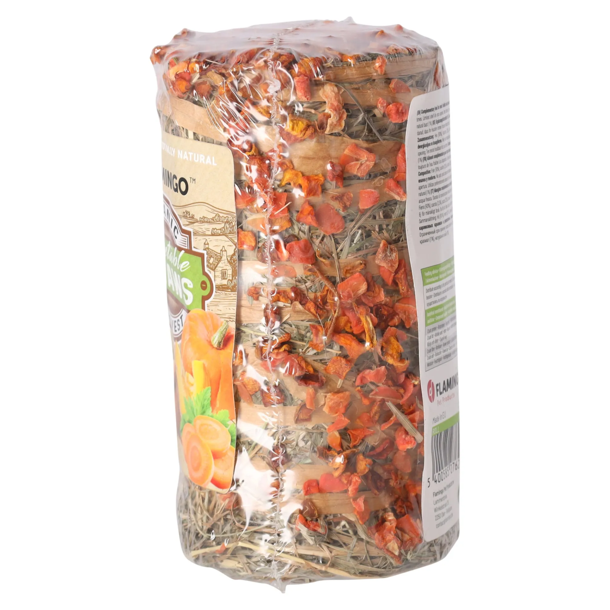 De hooirol met bloemendip voor knaagdieren is een natuurlijke traktatie die gedroogd hooi combineert met een geurige bloemendip. Het helpt de gebitsgezondheid te behouden en ondersteunt de spijsvertering, terwijl het ook een uitstekende bron van vezels is voor je huisdier. Dit product is perfect om variatie toe te voegen aan het dieet van je knaagdier.